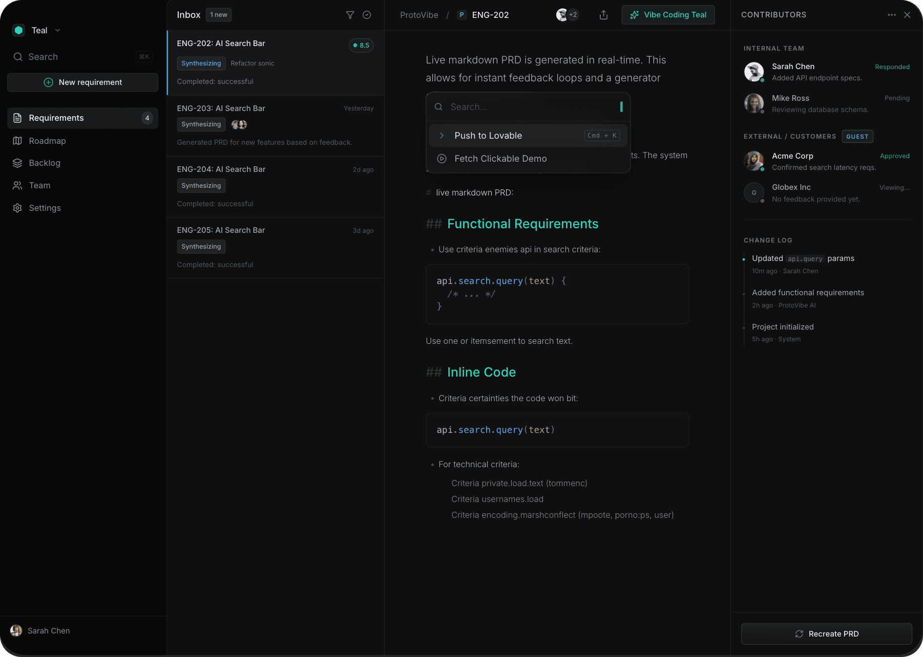 Turn PRDs into rapid prototypes that your non-technical teams, including customers, can test and comment on. This way engineering gets the right tickets. Always.
