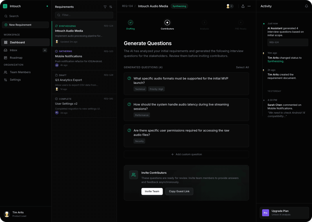 Use LLMs to translate customer feedback into structured PRD documents that your engineering team loves, complete with user stories, acceptance criteria and more.